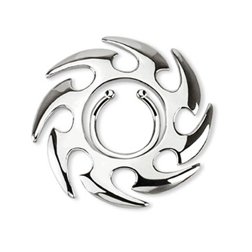 Aici ai ocazia să cumperi un scut de sân super-frumos, cu un soare tribal într-un design asemănător unei spirale. Scutul este format dintr-un mare soare tribal care emană „flăcări“ în aceeași direcție, dând impresia simbolică a unei spirale, care se învârte în jurul centrului. În interiorul soarelui, există un cercel mic care este deschis la un capăt și acest mic cercel se pune în jurul mamelonului și îi strângi ușor capetele împreună până când este fixat.