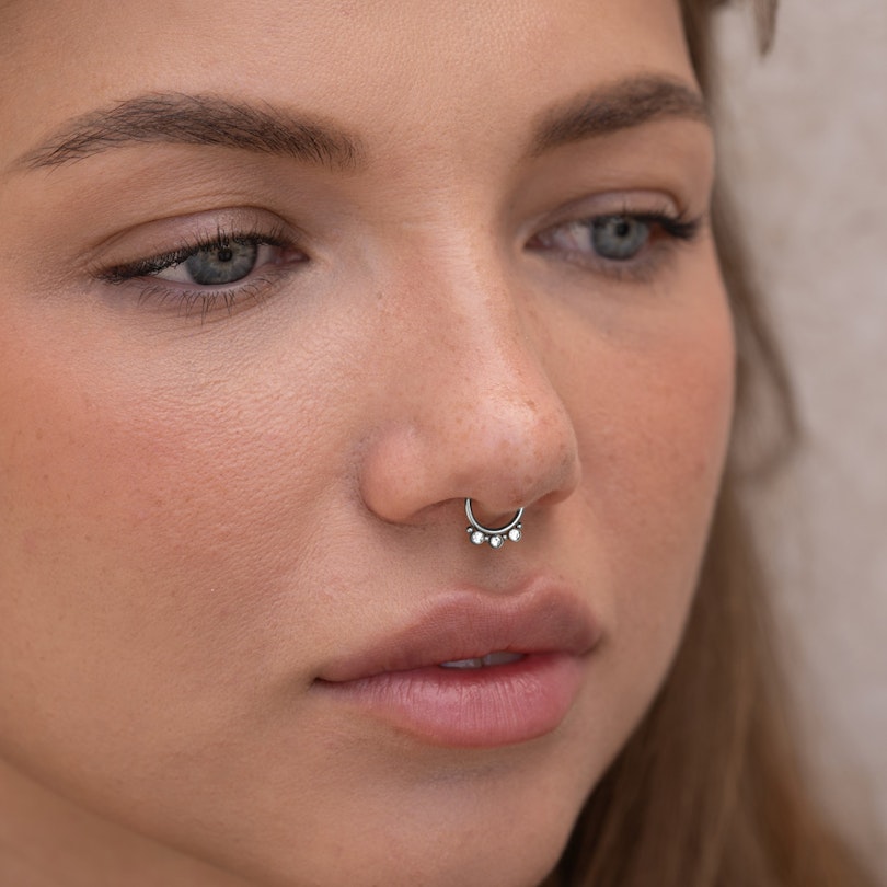 Nume: Cercel fals de septum cu trei pietre și bile mici