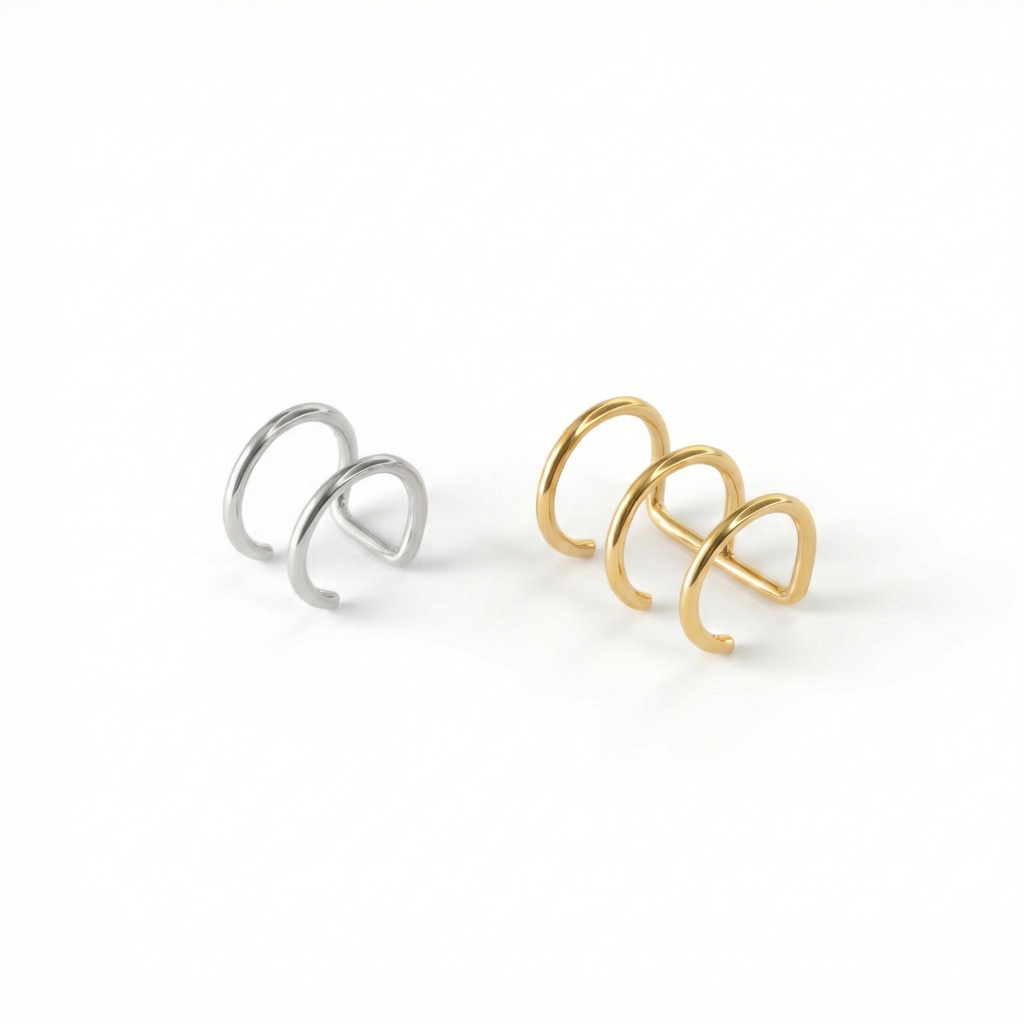 Acestă cătușă de ureche consistă în două sau trei cercuri cu o parte deschisă prin care îl vei pune în ureche fără nici o gaură de piercing. Trebuie doar să-l pui în cartilagiul urechii sau pe marginea ei și să-l apeși ușor ca să stea în ureche.
