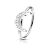 Cercel fără sudură din oțel chirurgical cu lună în creștere. Luna este decorată cu trei pietre transparente în centru, înconjurate de puncte micuțe încrustate.