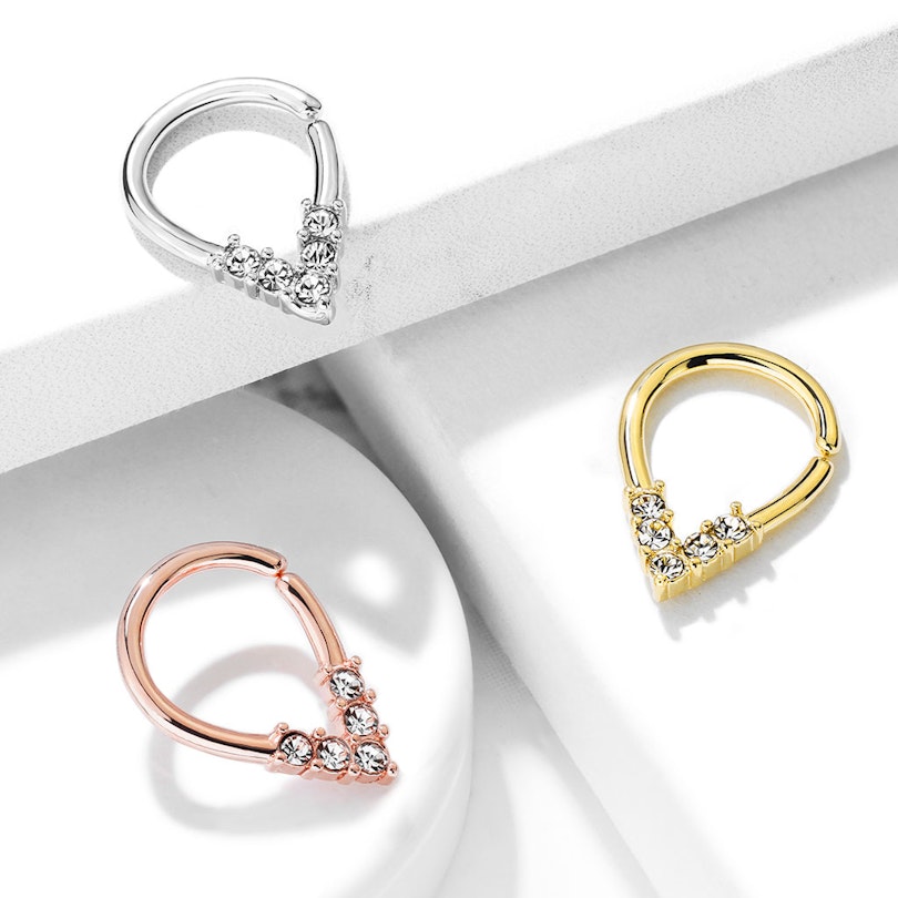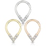 La capătul piesei, sunt cinci pietre transparente ce oferă cercelului un aspect elegant. Cercelul vine într-o varietate de mărimi din care poți alege, deci îl poți folosi în diferite părți ale corpului. De exemplu, arată fabulos în sept sau piercing-ul de tragus. Depinde doar de tine!