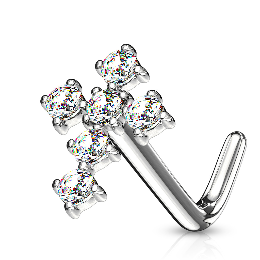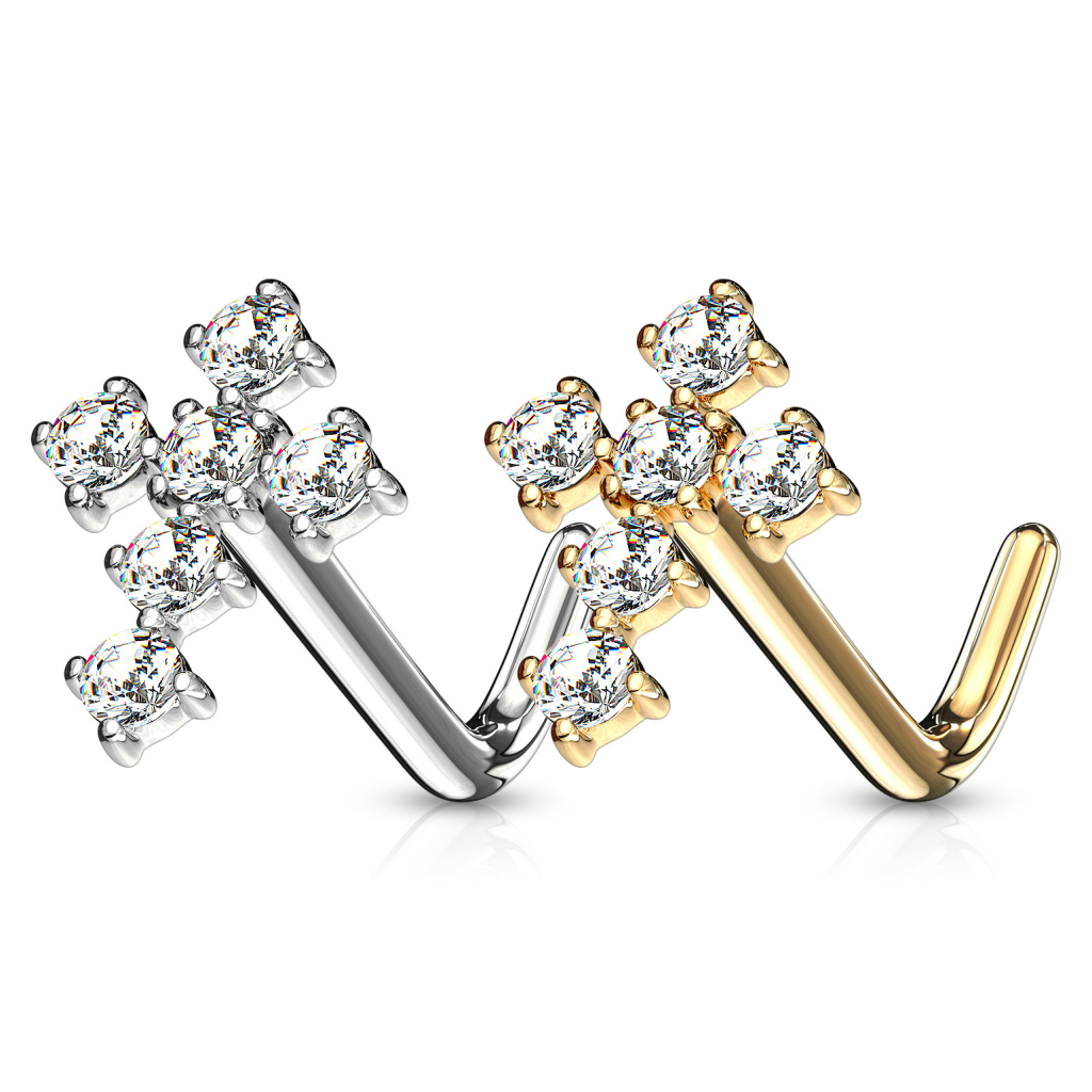 Acesta este un piercing de nas spectaculos! Deosebit de sus până jos, de la frumoasă culoare a crucii până la bara în forma de L. Nu este doar un stud frumos de nas ci unul făcut din aur de 14K, un material excelent. îl găsești în varianta clasică, aur galben, sau aur alb. Stud-ul este făcut cu un mic cârlig, cu unghiul îndoit în 90 de grade, care oferă un avantaj dublu: structura nu permite piercing-ului să iasă și, în același timp, îl face ușor de pus.