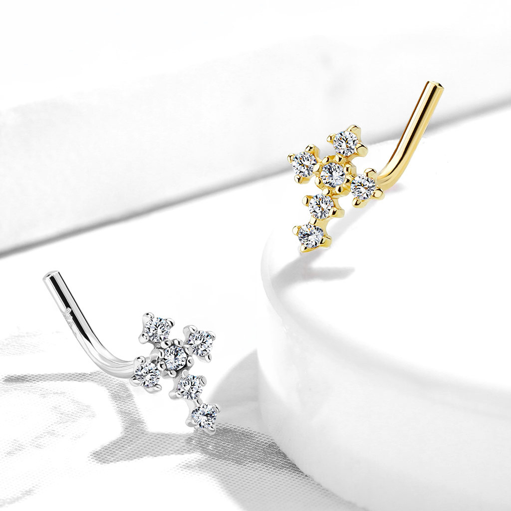 Cercel nazal din aur de 14 carate cu cruce din pietre