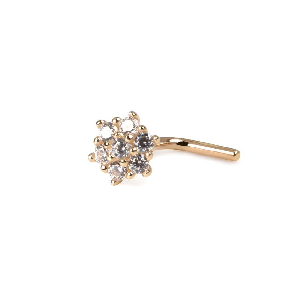 Cercel nazal din aur de 14 carate cu floare decorată cu pietre