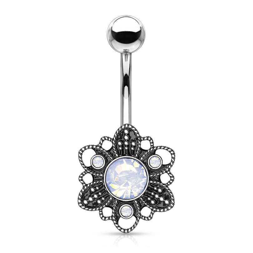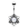 Nume: Cercel ombilical cu floare antichizată și piatră de opalit
