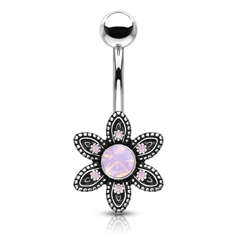 Nume: Cercel ombilical cu o floare și pietre rotunde de opalit