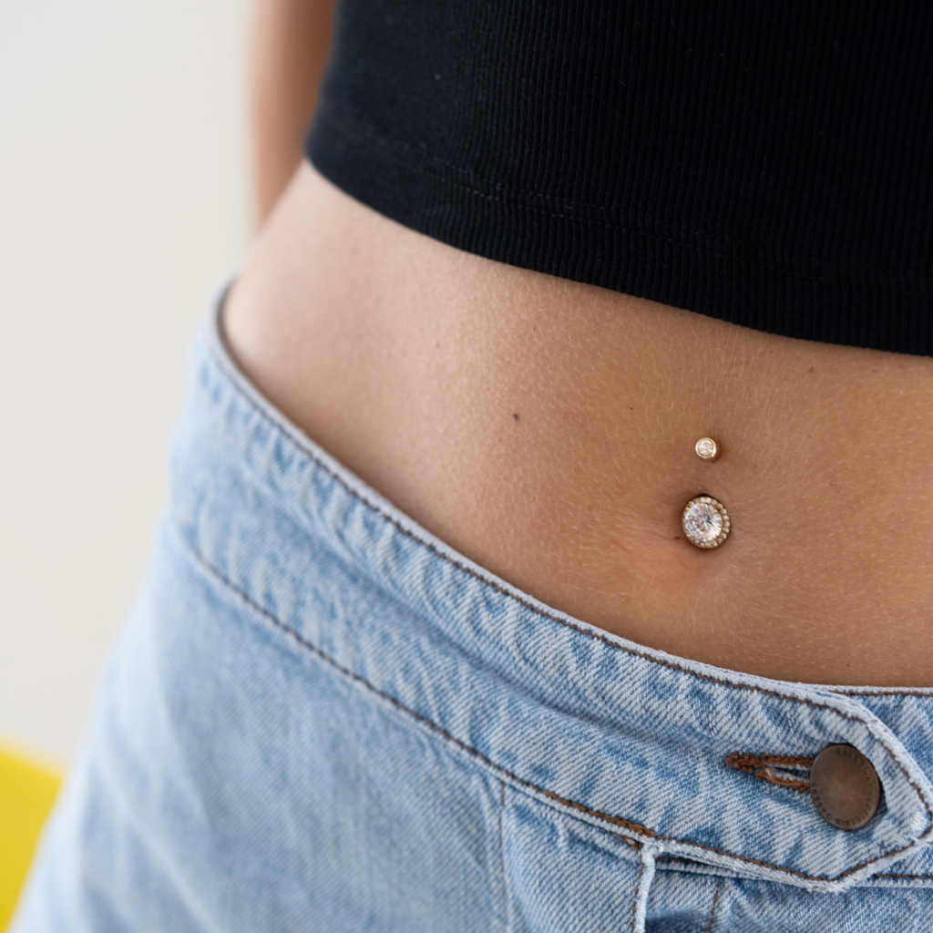 Nume: Cercel de buric cu piatră centrală fațetată