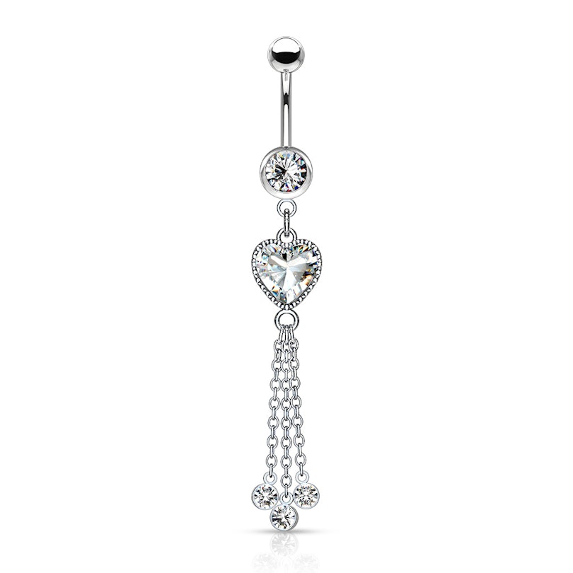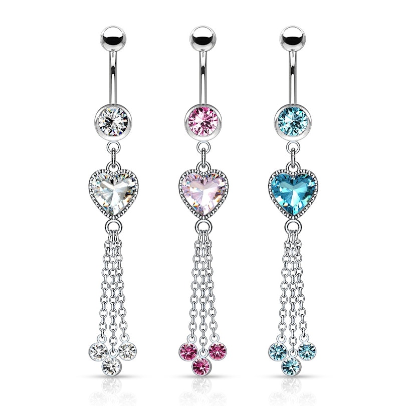 Nume: Cercel ombilical cu piatră în formă de inimă și lănțișoare