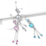Există foarte multe pietre pe acest cercel ombilical. Bara curbată este făcută din oțel chirurgical, în timp ce restul bijuteriei este creată din alamă. Pandantivul este placat cu o culoare are se potrivește cu restul cercelului de buric.