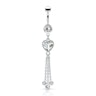 Cercel ombilical cu piatră în formă de inimă și lănțișoare