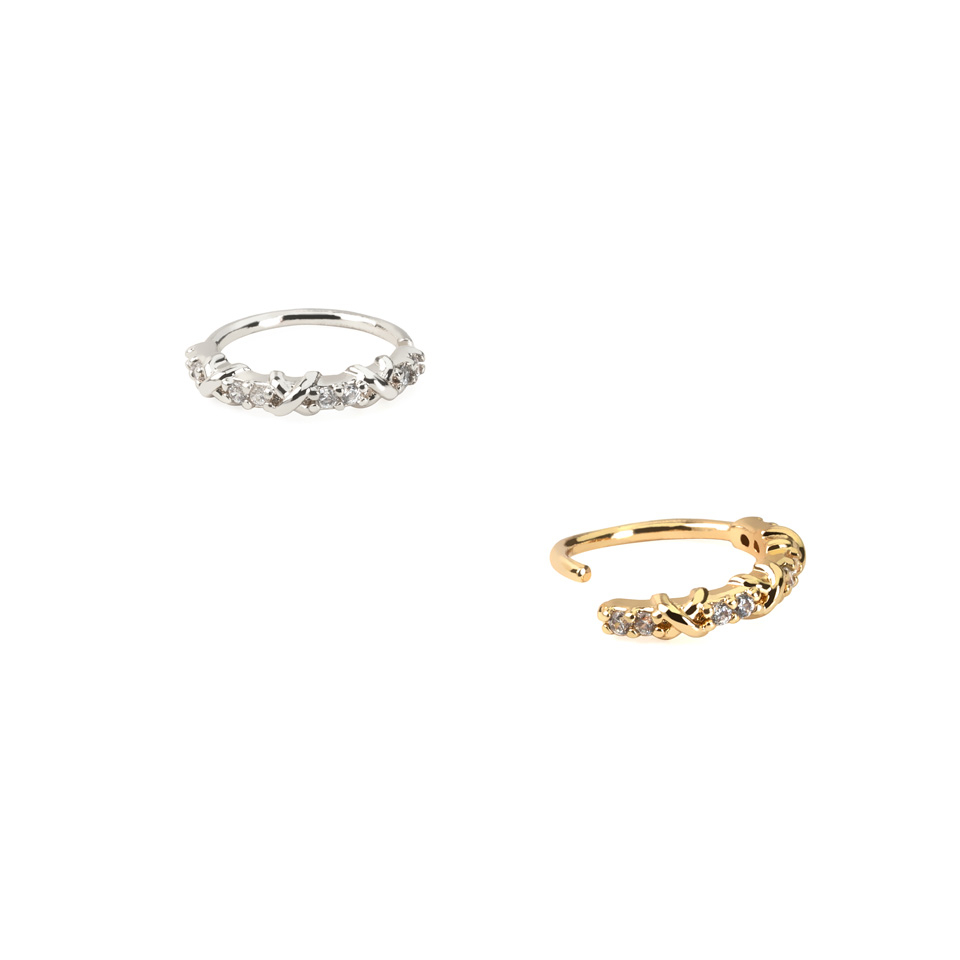 Nume: Cercel răsucit cu model în X cu pietre pavate