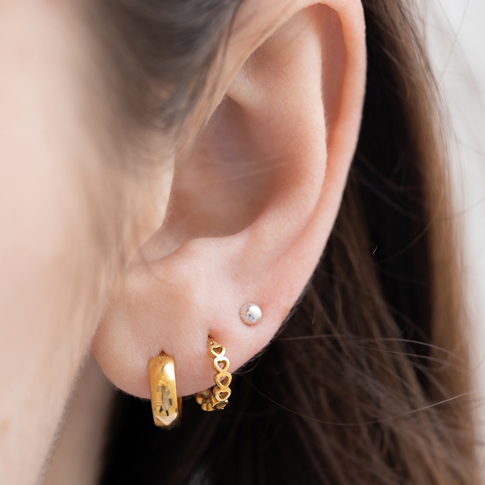 Cercelul are o grosime a firului de 1.2 mm și este disponibil în variantele 8 mm și 10 mm.
