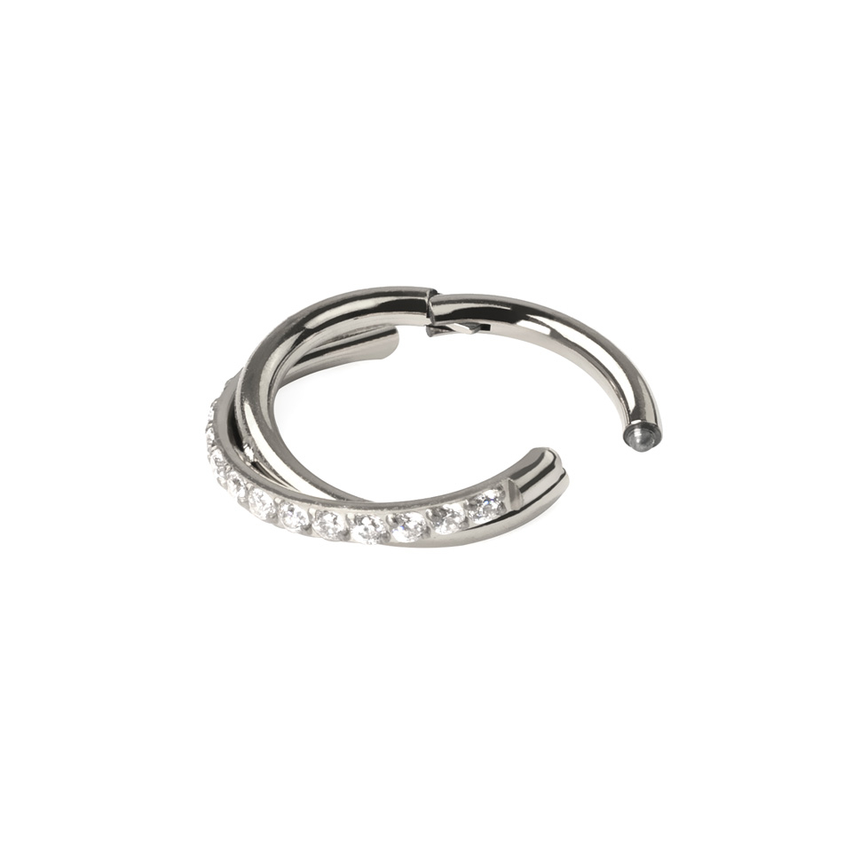 Acest cercel fabulos este și frumos și practic. Datorită mecanismului său de închidere prin balama, este ușor și simplu de inserat; trebuie doar să deschizi segmentul, să-l inserezi în piercing și să-l închizi apăsând pe el, până auzi un click.