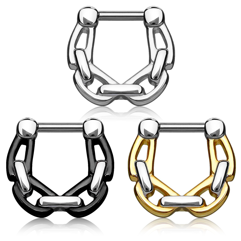 Acestă piesă este creată pentru un piercing de sept și ține un mecanism click ce se deschide și închide ușor.