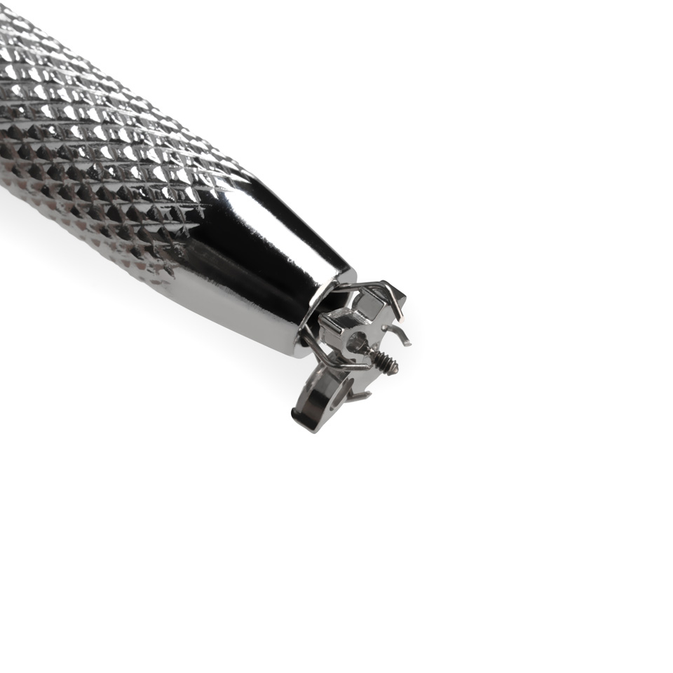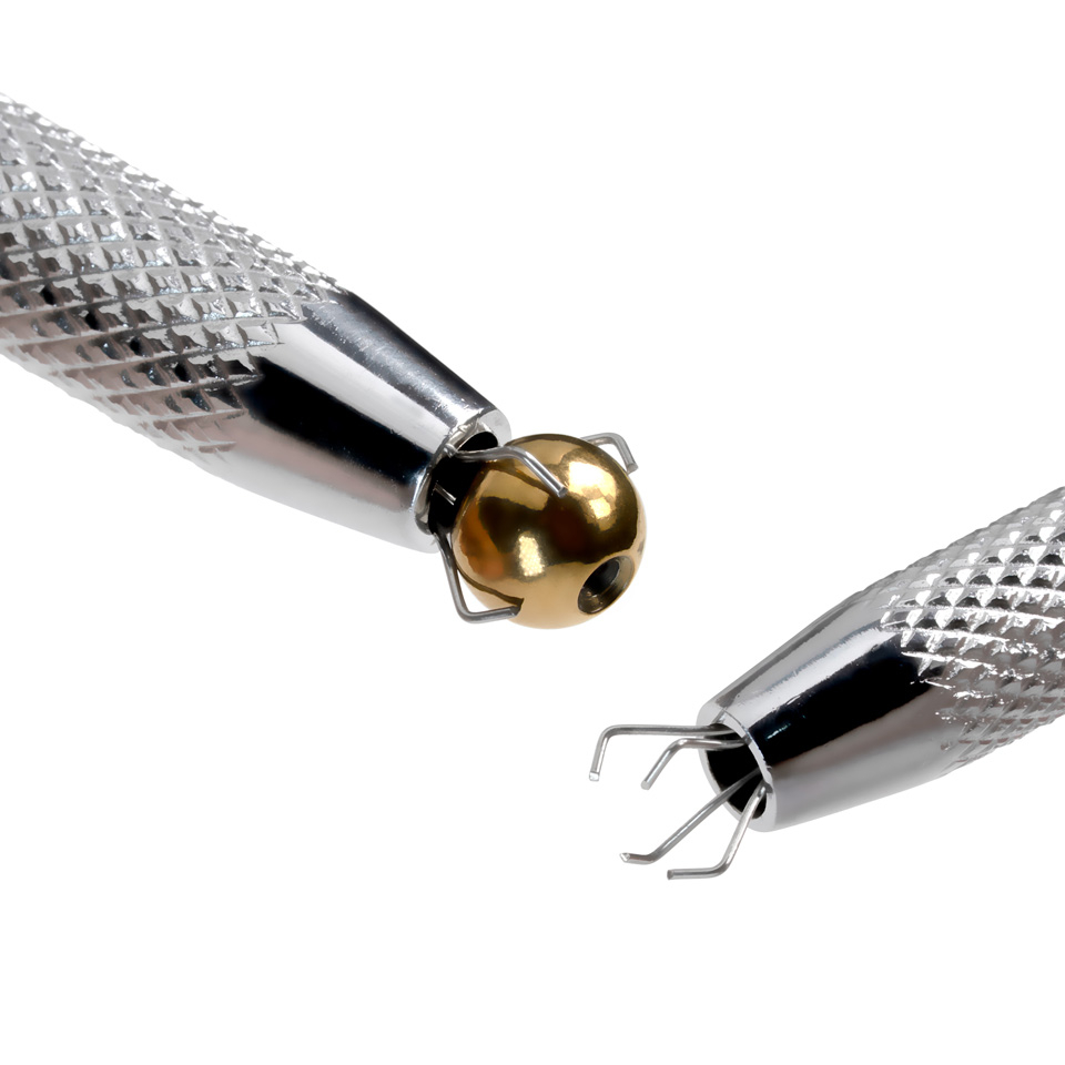 Ustensila are patru gheruțe care se deschid atunci când este apăsată, susținând bile între 3 și 6 mm în timp ce le înșurubezi în tija de barbell, cercel sau tija de labret. Doar asigură-te că gaura sau șurubul bilei este orientat/ă spre exterior, doar așa poate să funcționeze corect.