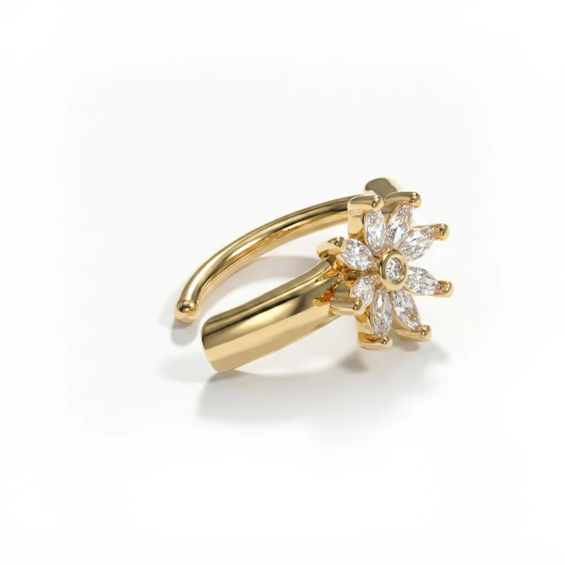 Acest clicker stilat are în centru o floare strălucitoare. Floarea este formată din 9 pietre de zirconiu. bijuteria este disponibilă în variantele auriu și argintiu.