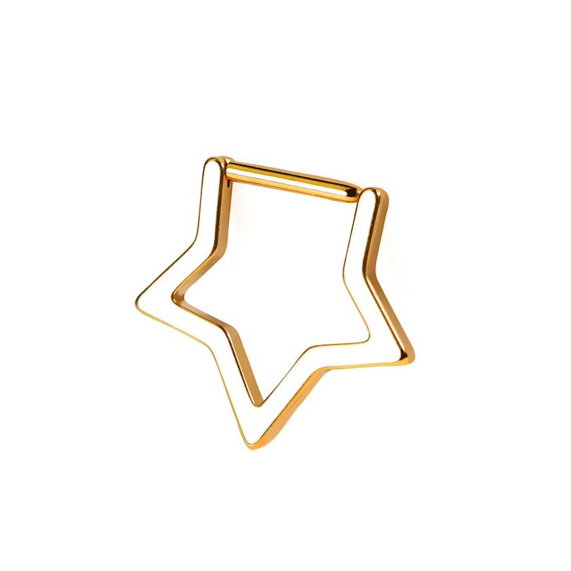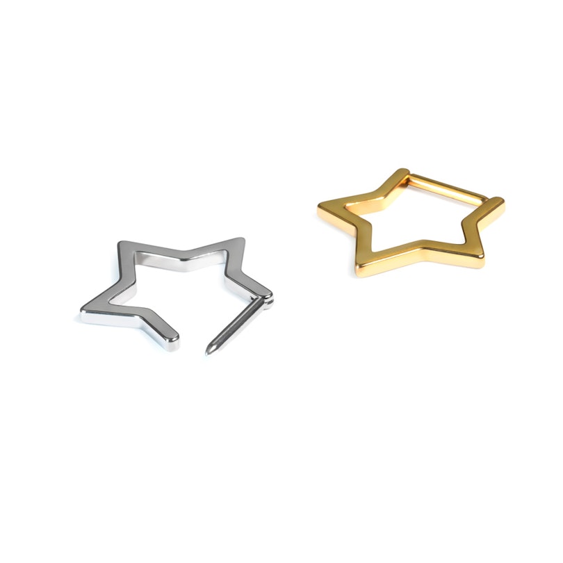 Acest clicker din titan în formă de stea este bijuteria perfectă pentru foarte multe piercing. De exemplu, ar arăta foarte bine într-un piercing de septum, helix, lob sau rook. realizat din titan durabil, este waterproof, delicat cu pielea sensibilă și făcut să reziste. Mecanismul de deschidere prin balama îl face ușor de inserat în piercing. Această bijuterie este de fapt goală în interior, așa că este destul de evidentă, deși este super ușoară și confortabil de purtat.