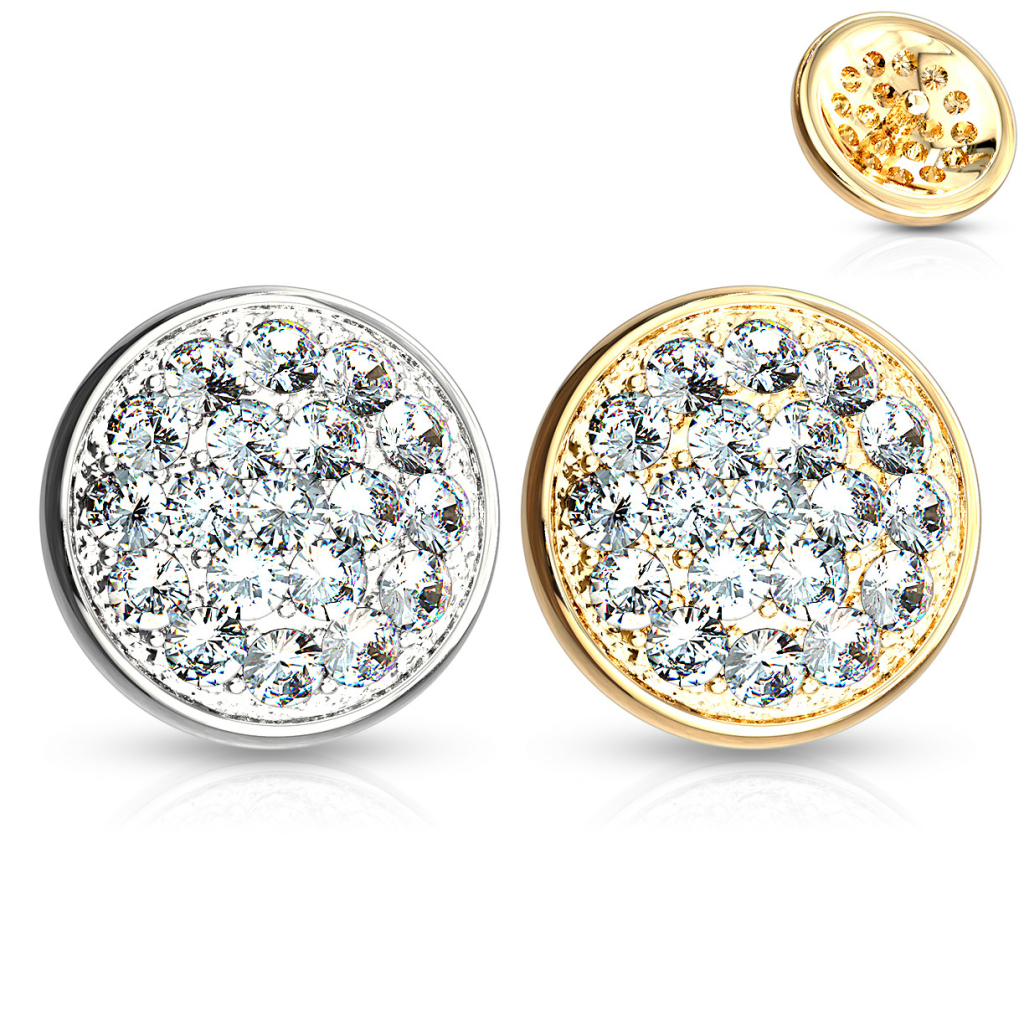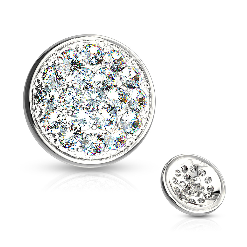 Pietre, pietre și mai multe pietre: această bijuterie este decorată cu grămăjoare de pietre, după cum poți vedea în poză. Nu este doar că suntem înnebuniți după Miss Zirconia, dar sunt 19 încrustate în această bijuterie! Dacă nu ai nevoie de atât de multe pietre pe bijuteria ta, atunci ai o pietro-problemă ;) Chiar dacă poate părea excesiv să fie 19 pietre încrustate într-un mic vârf dermal care nu măsoară mai multe de 1/4 inches (6 mm), arată incredibil de bine și nu este deloc greu.