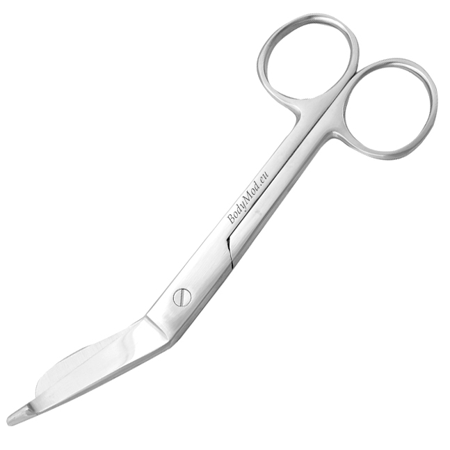 Acești foarfeci de bandaje sunt, așa cum sugerează și numele, destinați tăierii bandajelor sau altor țesături. Foarfecii sunt îndoiți și au un bot rotund pe marginea lor inferioară, astfel încât să vă taiați la folosire.