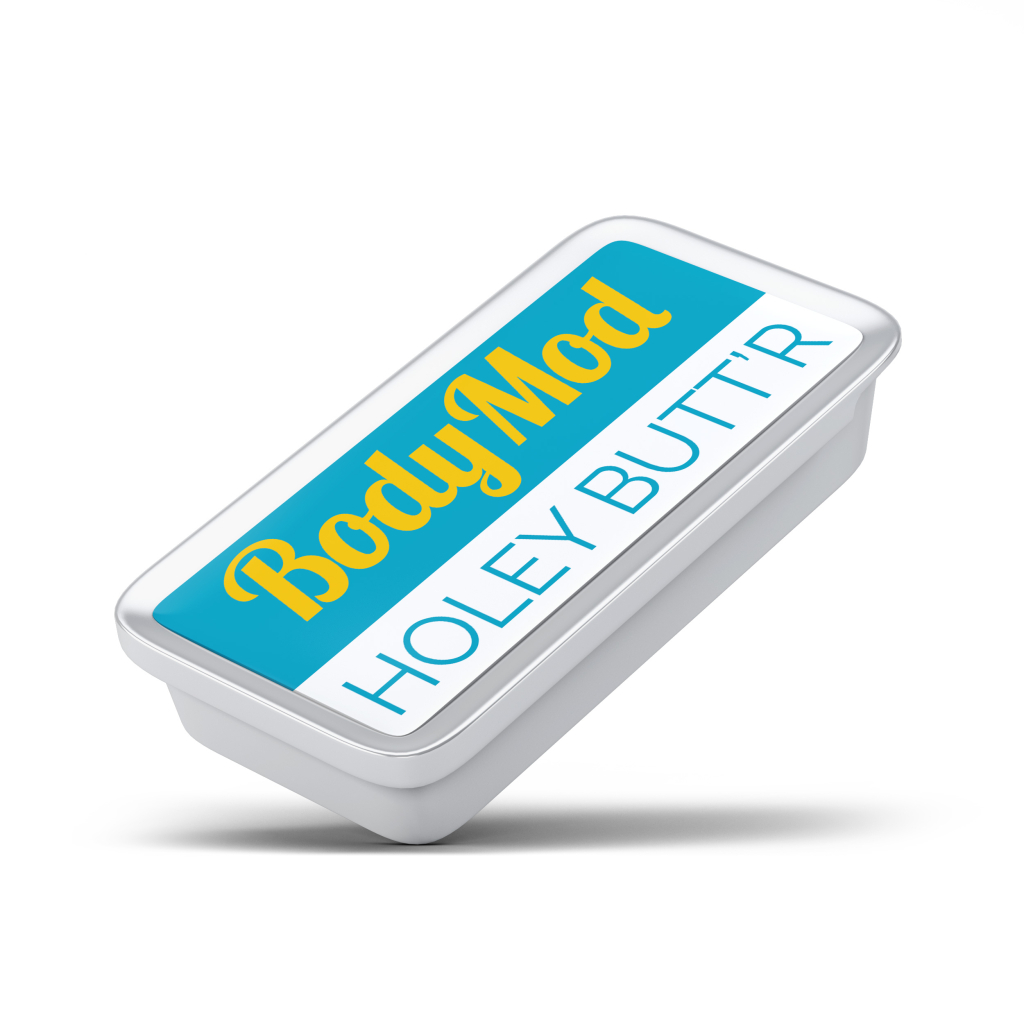 Holey Butt'r este un produs vegan de îngrijire care vă ajută să vă întrețineți lărgirea piercing-ului. Acesta conține un amestec natural de emolienți și este, de asemenea, hidratant.