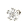 Poate ai ghicit deja din numele bijuteriei că acest labret este decorat cu o floare frumoasă și vibrantă. Petalele florii sunt alcătuite dintr-un grup pietre. Floarea prinde contur cu ajutorul celor cinci pietre în formă de picături de ploaie, care strălucesc pe partea frontală a bijuteriei.