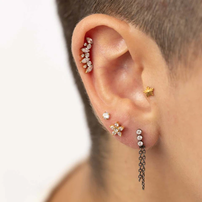 Parte a corpului: Tragus, Spiderbite, Snakebite, Medusa, Madonna, Labret inferior, Lobul urechii, Helix, Conch, Forward helix, Angelbite