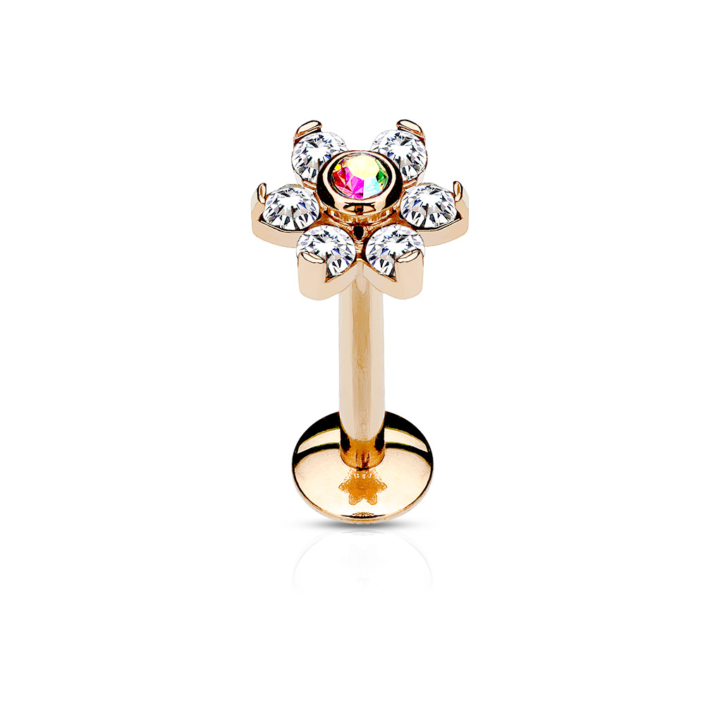 Labret cu floare în vârf și filet intern-Aur roz-Aurora Borealis