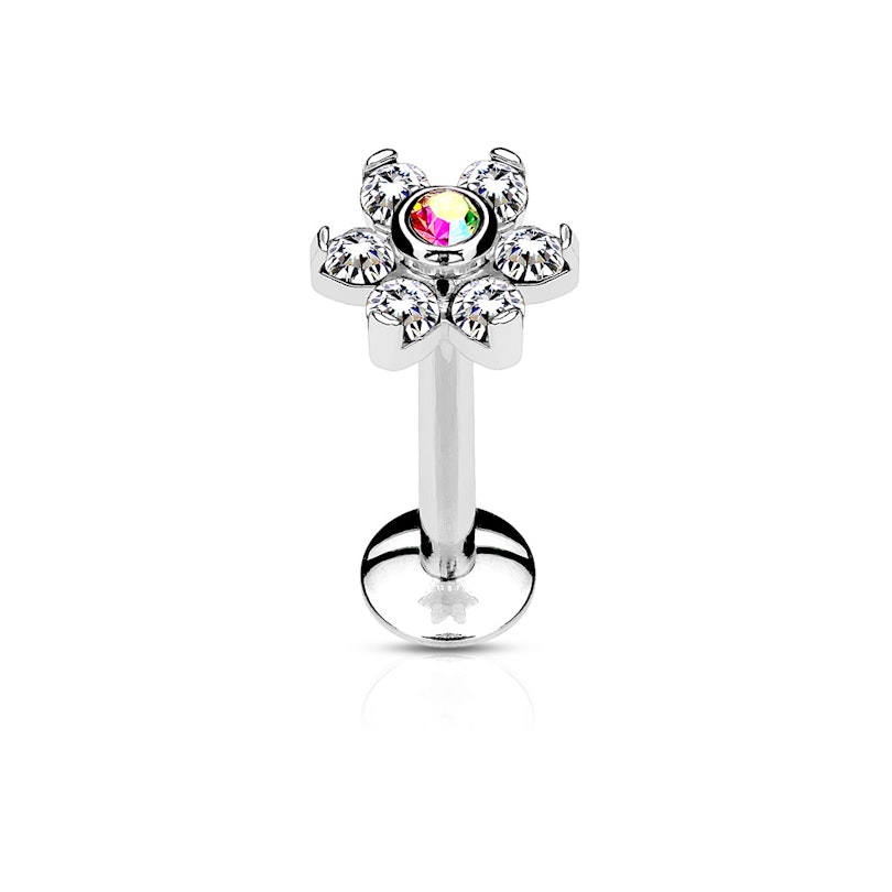 Poți avea acest labret în culoarea aleasă de tine unde modelul argintiu are o piatră centrală în tonuri diferite.