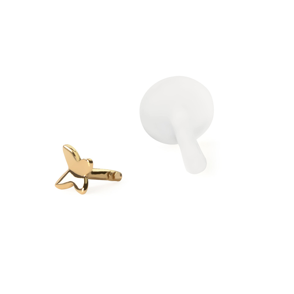 Labret cu fluturaș din aur de 14k cu tijă din PTFE