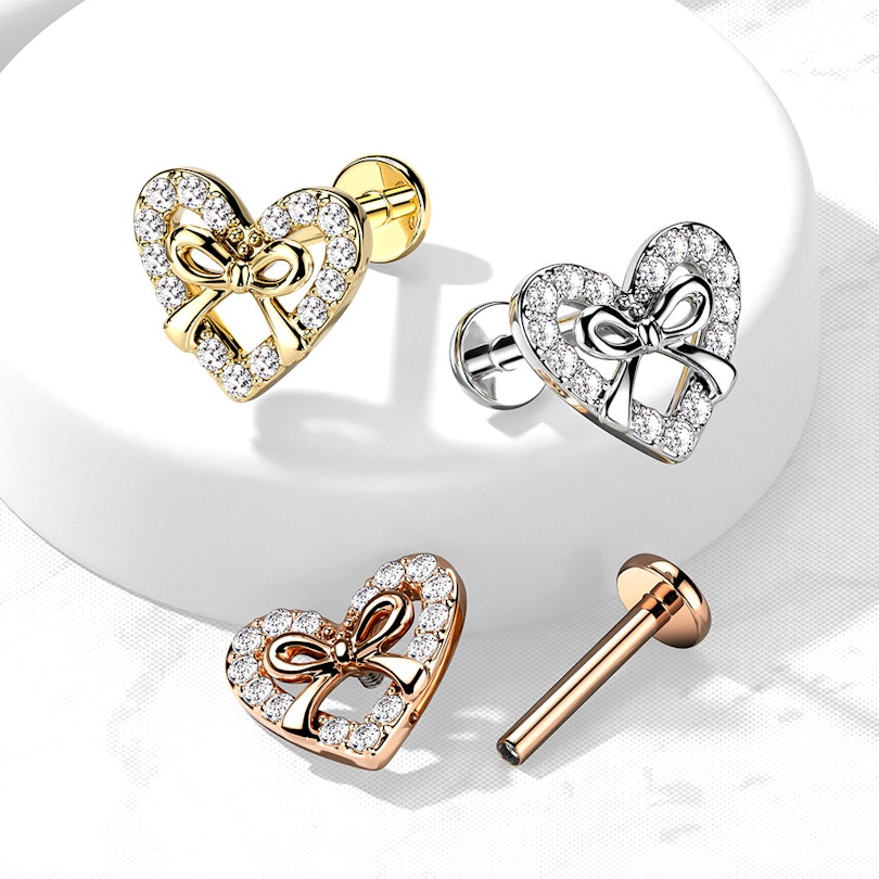 Labret cu inimă și pietre încrustate fundiță și inimă internă