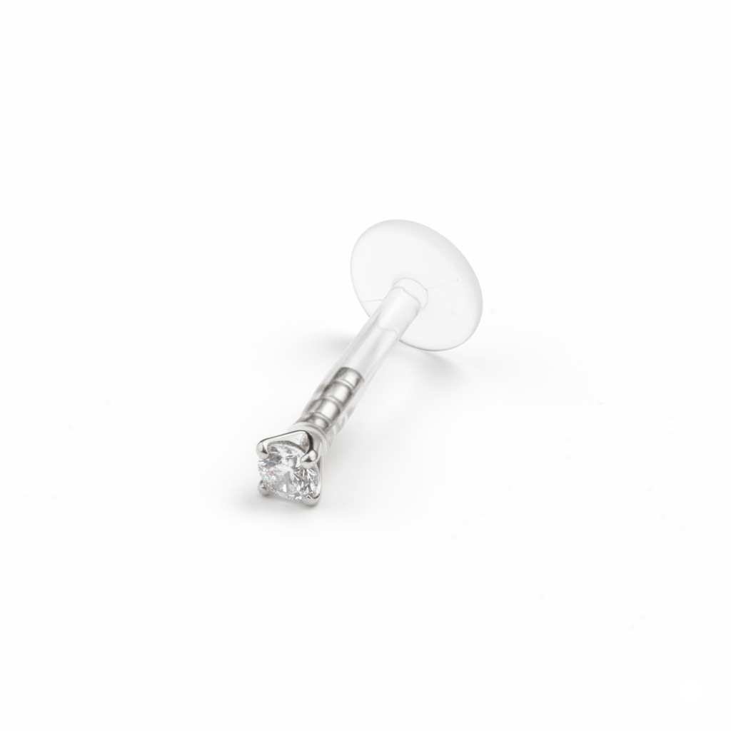 Vârful labretului este făcut în totalitate din aur de 14 carate. Poți găsi acest labret în trei tipuri de aur diferite: aur alb, aur roz și aur galben. Toate modelele prezintă o piatră fațetată în vârf. Acestă piatră este folosită în mod obișnuit să se asemene cu un diamant, cum reflectă lumina în mici fațete. Îl aruncă înapoi pentru a forma un aspect luminos şi astfel primeşte o atenţie sporită. Poți de asemenea alege mărimea pietrei, depinzând cât de mult vrei să ieși în evidență ;)