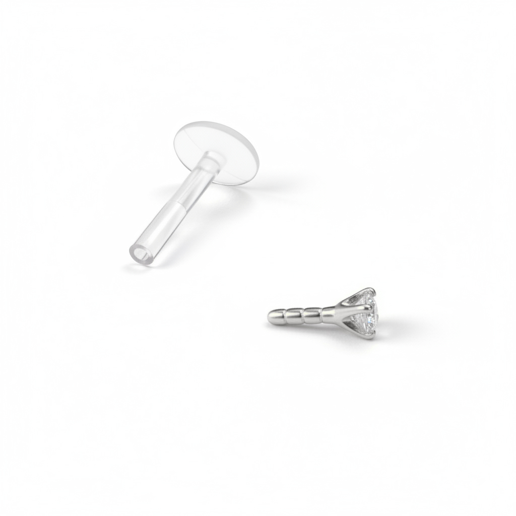 Labret din aur de 14k cu piatră rotundă și post din PTFE