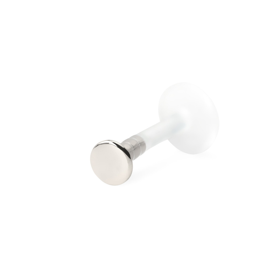 Acest labret are un opritor push-in, pentru a-l închide, apasă-l în stâlpul de PTFE. PTFE este un material ușor și flexibil, foarte ușor de folosit, nici nu-ți vei da seama că îl porți. În plus, nu conține nichel, lucru care îl face sigur pentru persoanele alergice.