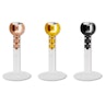 Bijuteria este disponibilă în diferite lungimi și culori. Tu alegi combinația pe care o vrei pentru labretul tău. Orice ai alege, vârful barei are o piatră transparentă cristal de 2.5 mm.