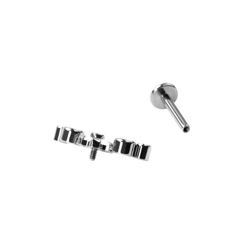 Labretul din imagine este fabricat din titan, unul dintre cele mai durabile și recomandate materiale pentru piercinguri. Este filetat interior, adică are un fir intern. Vârful are o tijă filetată înșurubată în suport, pentru a evita zgârierea atunci când inserezi labretul în piercing.