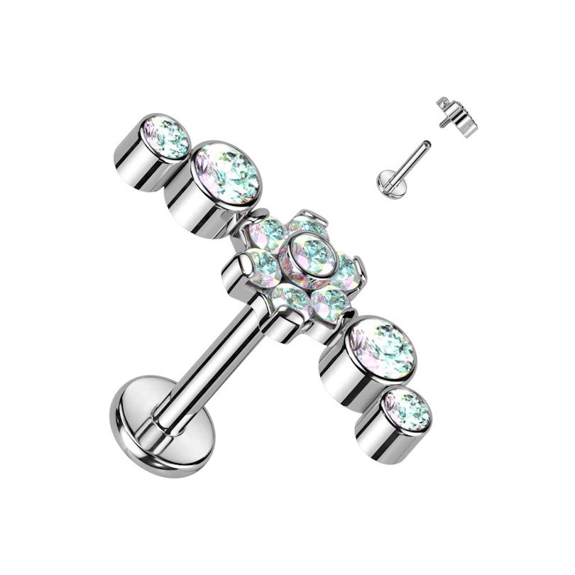 Nume: Labret din titan cu floare în centru și pietre zirconiu