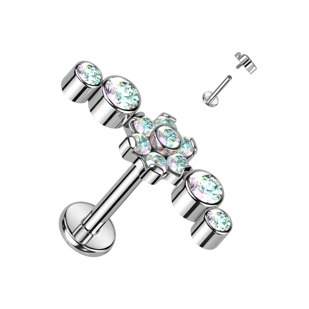 Labret din titan cu floare în centru și pietre zirconiu
