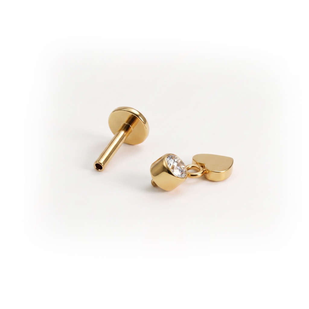 Este realizat din titan, așa că este hipoalergenic, rezistent la apă și suficient de durabil pentru purtare zilnică. Filetul intern face inserarea lină și fixarea sigură, ca să rămână exact unde trebuie. Are spate plat și este conceput pentru piercinguri conch, helix, lobe sau tragus.