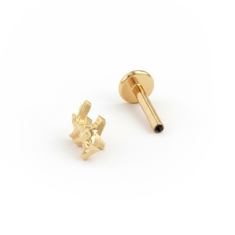 Labretul din titan cu peștele koi este mai mult decât design; este plin de semnificații. inspirat de peștele koi, simboluri ale puterii și transformării, acest labret se mișcă alături de tine în momentele de schimbare. Disponibil in finisajele auriu și argintiu, are detalii realizate intenționat.