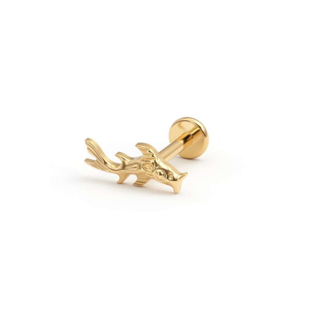 Labretul din titan cu peștele koi este mai mult decât design; este plin de semnificații. inspirat de peștele koi, simboluri ale puterii și transformării, acest labret se mișcă alături de tine în momentele de schimbare. Disponibil in finisajele auriu și argintiu, are detalii realizate intenționat.