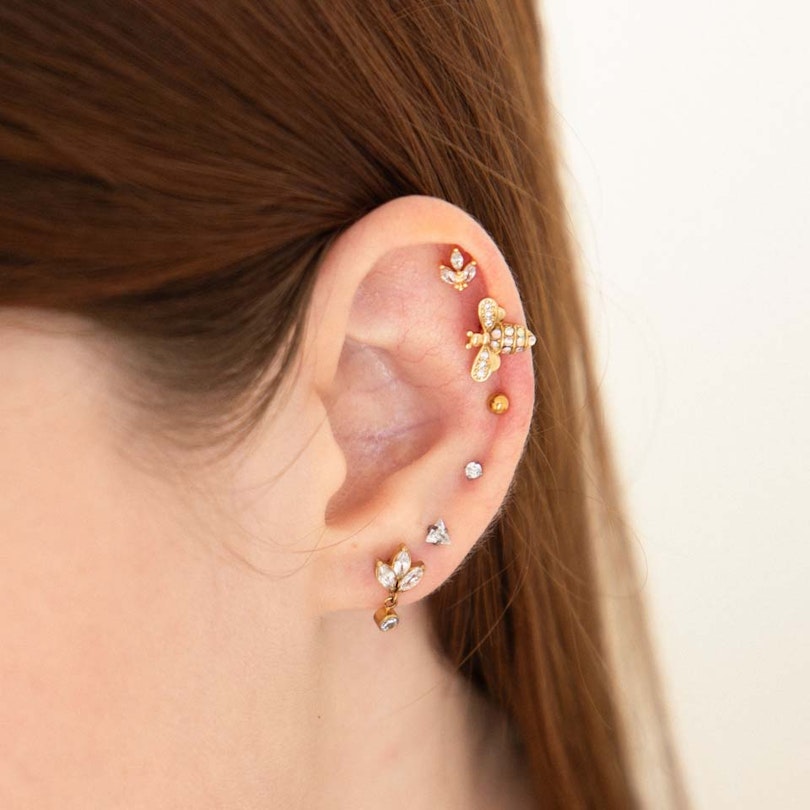 Parte a corpului: Tragus, Spiderbite, Snakebite, Medusa, Madonna, Labret inferior, Lobul urechii, Helix, Conch, Forward helix, Angelbite