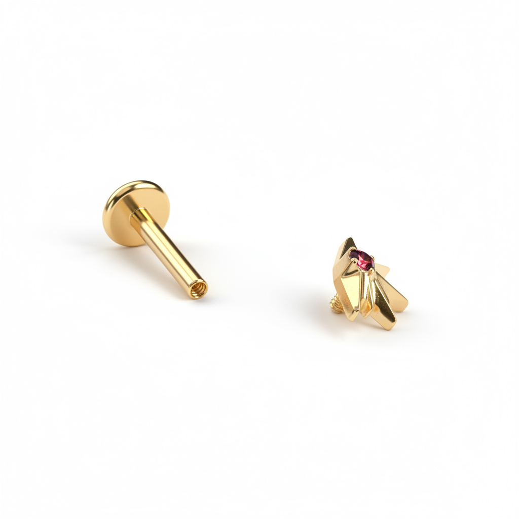 Labretul din titan cu răsărit de soare este făcut pentru momentele care durează mai mult de o zi. Modelul cu răsărit de soare cu piatră fixată în gheruțe, roșie sau transparentă. În variantele auriu sau argintiu, se adaptează în funcție de tine.