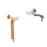 Acest labret stilat are un șir de trei pietre se zirconiu înacastrate cu două pandante sub formă de lanț atașate de o buclă mică la un capăt al lui. Lănțișoarele au mărimi diferite, ceea ce dă un efect asimetric foarte cool. Cel mai lung lanț măsoară 19 mm. Bijuteria poate fi purtată orizontal în lob sau vertical, în unghi, în alte piercinguri de ureche - poartă-l cum vrei pentru un look super.