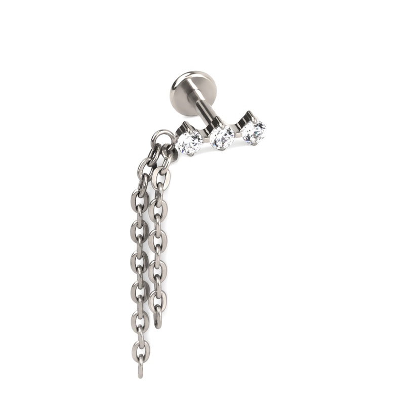 Nume: Labret din titan cu trio de pietre și lanț dublu care atârnă