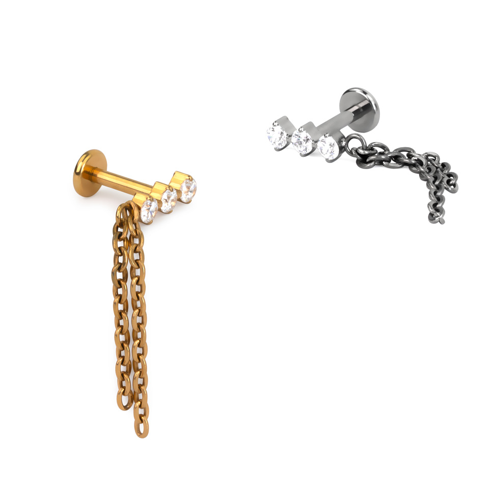 Nume: Labret din titan cu trio de pietre și lanț dublu care atârnă