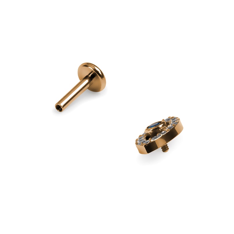 Disponibil în variantele auriu și argintiu, acest labret stă fix în helix sau lob și arată foarte bine acolo. Puternic, drăguț și puțin superstițios.