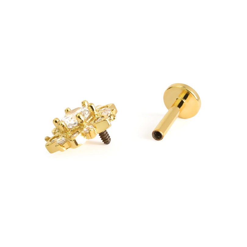 Acest labret este făcut din oțel chirurgical. Este filetat în interior, ceea ce înseamnă că postul are un fir intern. Vârful are o tijă cu fir înșurubată în suport, evitând astfel zgârierea pieli când îl inserezi în gaura piercing-ul tău.