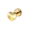 Acest labret încântător în formă de inimă are un vârf frumos texturat, cu linii subtile care radiază din centru, creând un efect surprinzător în bătaia luminii.