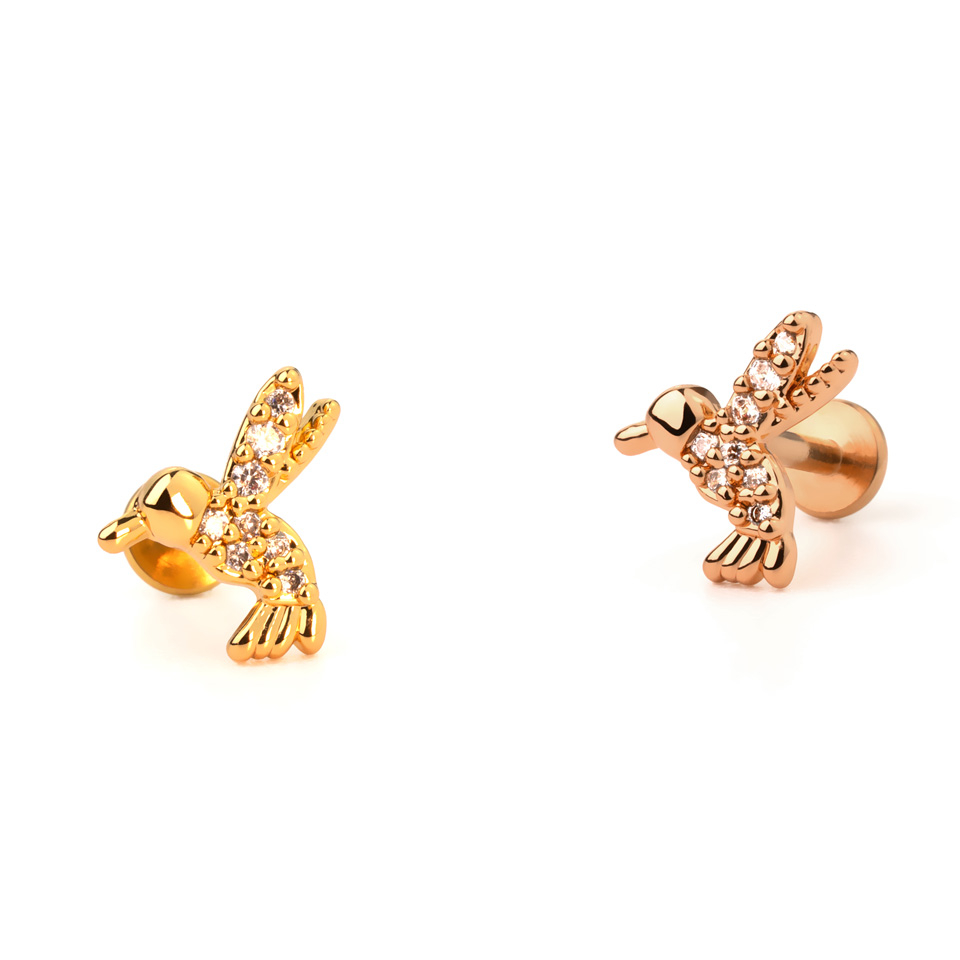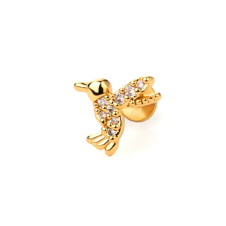 Dintre toate animalele frumoase de pe Pământ, Pasărea colibri este una dintre cele care oferă cea mai multă inspirație. Este ageră, inteligentă, înflăcărată și poate pluti în aer. Modelul acestui labret îți însuflețește lookul și poate fi un cadou minunat pentru o persoană iubită. Penajul păsării este acoperit de pietre strălucitoare, ceea ce o face și mai atrăgătoare.