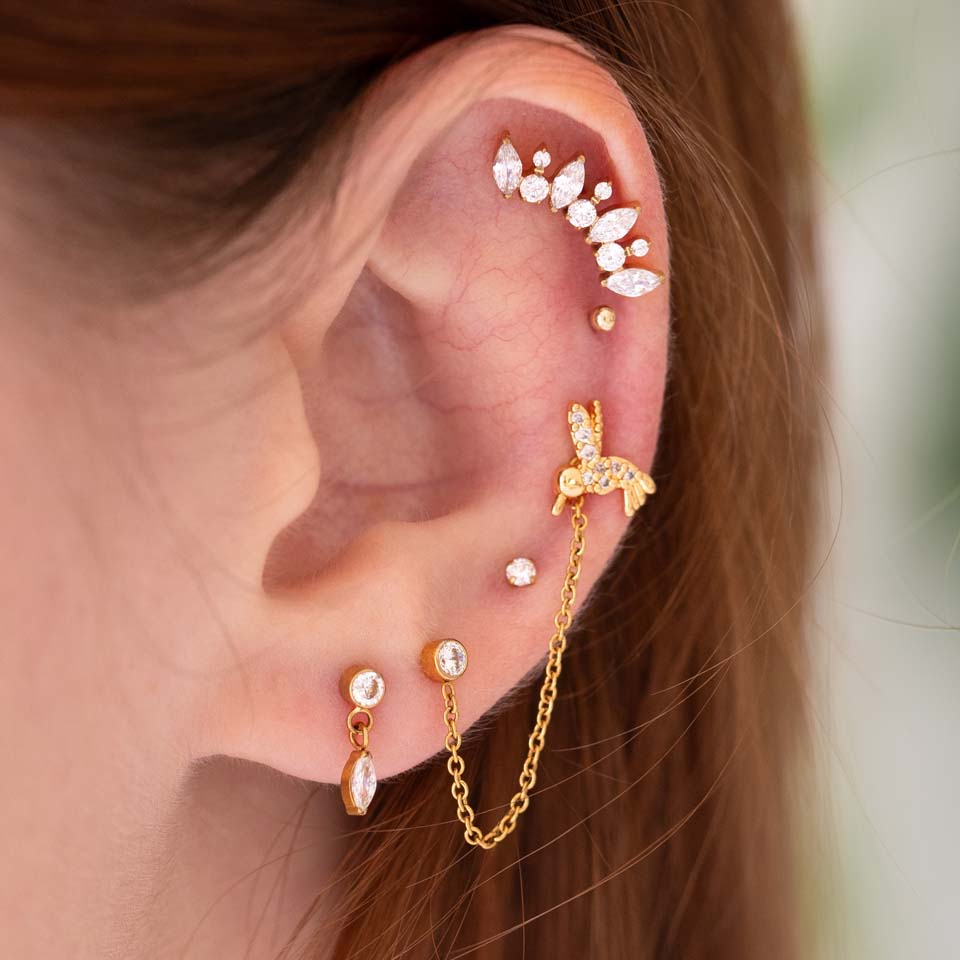 Parte a corpului: Tragus, Spiderbite, Snakebite, Medusa, Madonna, Labret inferior, Lobul urechii, Helix, Conch, Forward helix, Angelbite